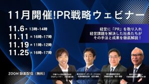 【11月開催!PR戦略ウェビナー】経営にPRを取り入れ成功した社長たちが 実践した「具体的手法」と「成果」を徹底解説!