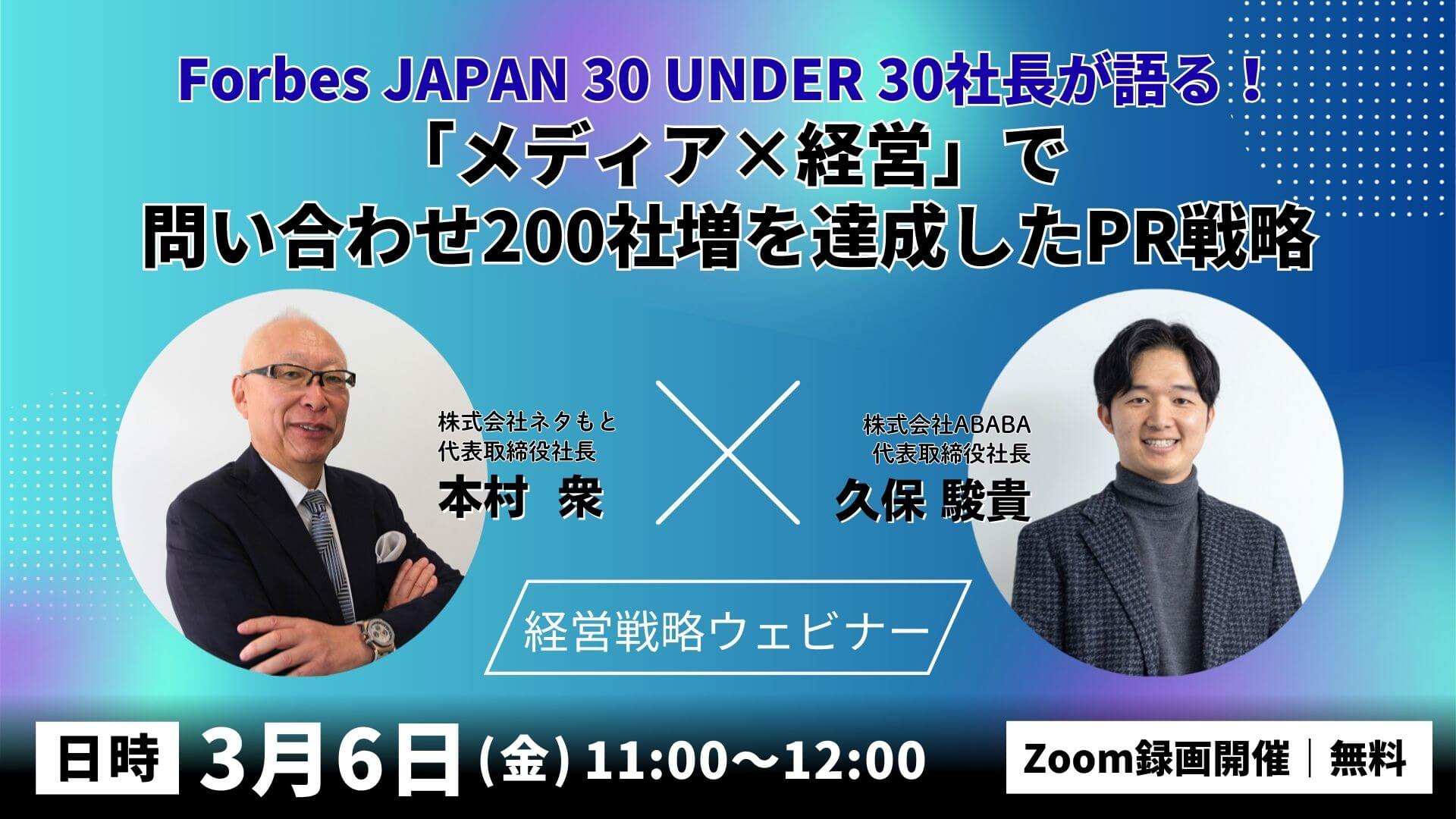 『ForbesJAPAN 30 UNDER 30』社長が語る!「メディア×経営」で問い合わせ200社増を達成したPR戦略
